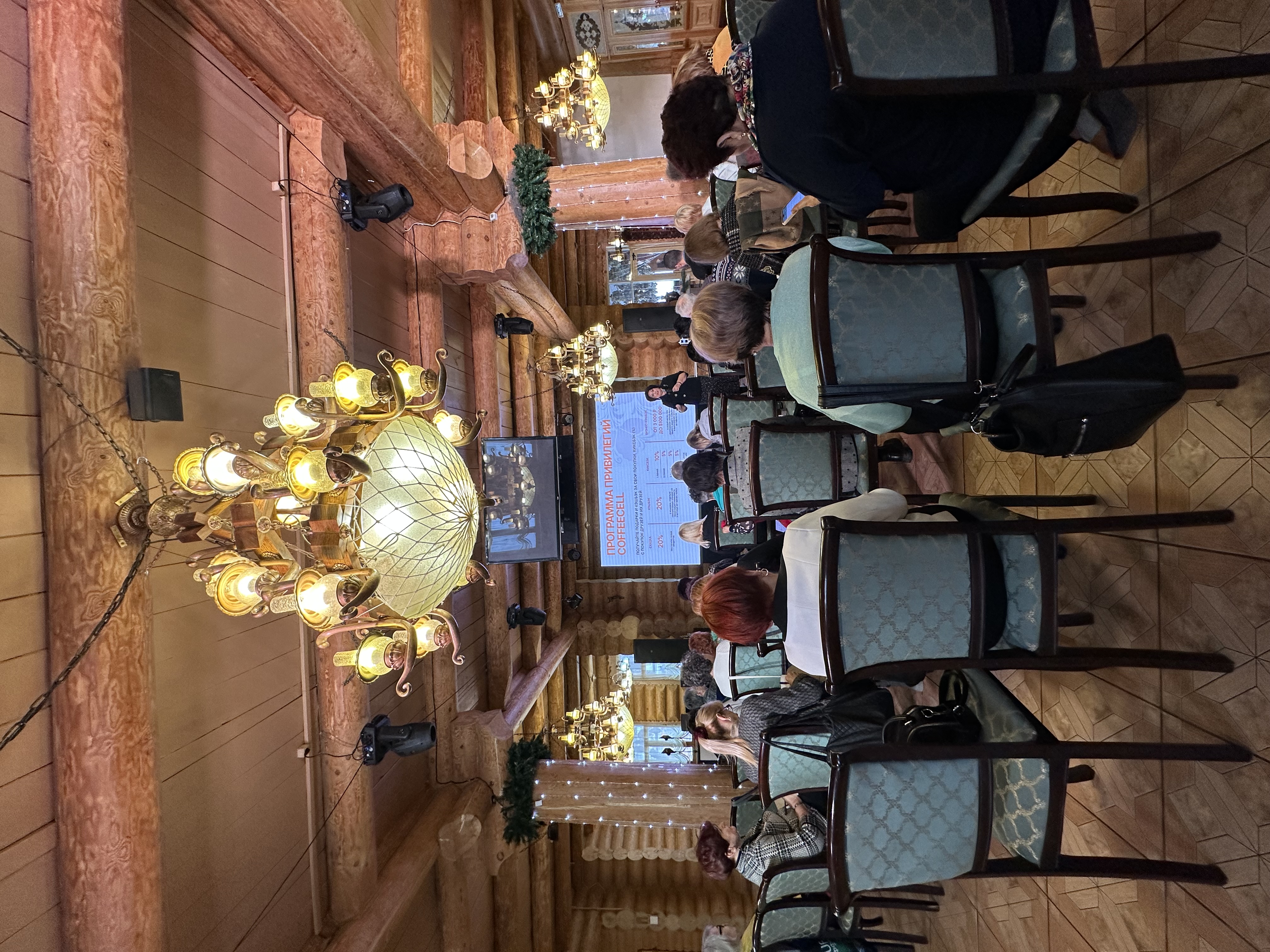 Банкетный зал был оформлен в изысканном стиле: кристальные люстры, авторские цветочные композиции и панорамные LED-экраны создавали атмосферу полного погружения в концепцию вечера.